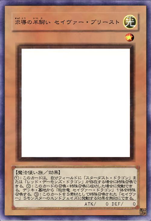 | ①:このカードは、自分フィールドに「スターダスト・ドラゴン」または「レッド・デーモンズ・ドラゴン」が存在する場合に特殊召喚できる。②:このカードの召喚・特殊召喚に成功した場合に発動でき る。デッキ・墓地から「救世竜 セイヴァー・ドラゴン」1体を特殊召喚する。③:このカードをS素材として特殊召喚された「セイヴァー」Sモンスターのエンドフェイズに発動する効果を無効にできる。 | |||