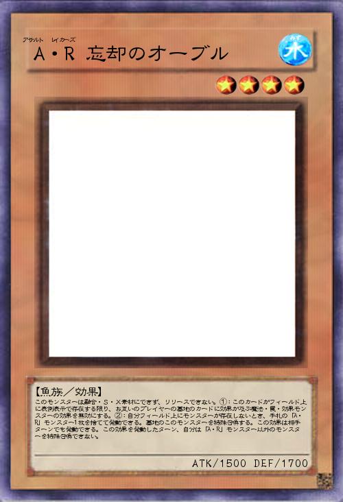 | このモンスターは融合・S・X素材にできず、リリースできない。①:このカードがフィールド上に表側表示で存在する限り、お互いのプレイヤーの墓地のカードに効果が及ぶ魔法・罠・効果モンスターの効果を無効にする。②:自分フィールド上にモンスターが存在しないとき、手札の「A・R」モンスター1枚を捨てて発動できる。墓地のこのモンスターを特殊召喚する。この効果は相手ターンでも発動できる。この効果を発動したターン、自分は「A・R」モンスター以外のモンスターを特殊召喚できない。 | |||