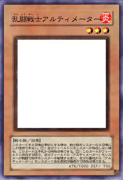 | このカードをX召喚の素材とする場合、戦士族モンスターのX召喚にしか使用できない。①:自分フィールドにモンスターが存在しない場合、このカードは手札から特殊召喚できる。②:このカードがフィールドに存在する限り、自分フィールドの「アルティメーター」モンスターが戦闘で相手モンスターを破壊する度に、自分の墓地から「アルティメーター」モンスター1体を表側守備表示で特殊召喚できる。 | |||