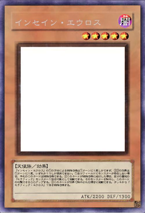| 「インセイン・エウロス」の①の方法による特殊召喚は①ターンに1度しかできず、②③の効果は①ターンに1度、いずれか1つしか使用できない。①自分フィールドにモンスターが存在しない場合、手札のこのカードは特殊召喚できる。②このカードが特殊召喚に成功した場合、自分の墓地の「セラフィック」モンスター1体を対象にして発動できる。そのモンスターを除外し、このカードの攻撃力を800アップする。③このカードが効果で除外された場合に発動できる。デッキから「セラフィック・エウロス」1体を特殊召喚する。 | |||