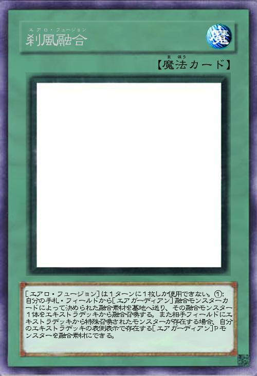 | [エアロ・フュージョン]は1ターンに1枚しか使用できない。①:自分の手札・フィールドから[エアガーディアン]融合モンスターカードによって決められた融合素材を墓地へ送り、その融合モンスター1体をエキストラデッキから融合召喚する。また相手フィールドにエキストラデッキから特殊召喚されたモンスターが存在する場合、自分のエキストラデッキの表側表示で存在する[エアガーディアン]Pモンスターを融合素材にできる。 | |||