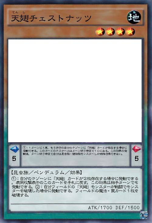 | ①:1ターンに1度、もう片方の自分のPゾーンに「天翅」カードが存在する場合に発動できる。このカードのPスケールはターン終了時まで10になる。この効果の発動後、ターン終了時まで自分は昆虫族・植物族モンスターしか特殊召喚できない。 | |||
