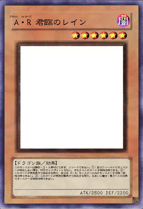 | このモンスターは融合・S・X素材にできず、リリースできない。①:自分フィールドにモンスターが存在しない場合、1000ライフポイントを払い、手札からこのカードを特殊召喚できる。②:このカードが表側表示で存在する限り、自分は「A・R」モンスター以外のモンスターを召喚・特殊召喚できない。③:このカードが表側攻撃表示で存在する限り、お互いに魔法・罠カードの効果でモンスターを特殊召喚できない。 | |||