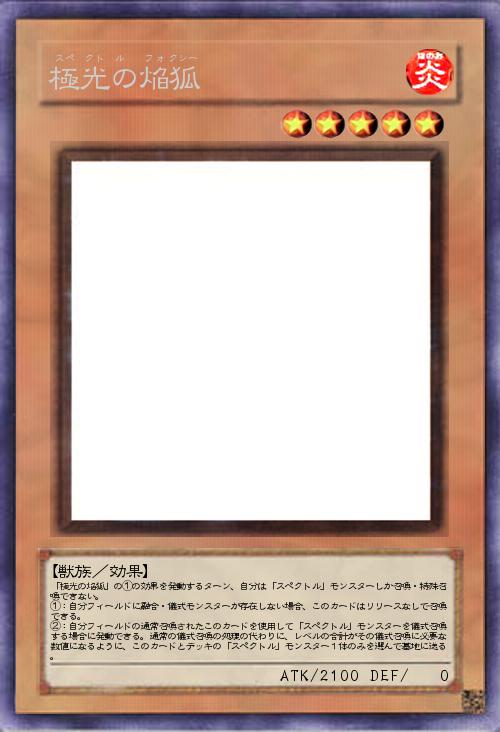 | 「極光の焔狐」の①の効果を発動するターン、自分は「スペクトル」モンスターしか召喚・特殊召喚できない。 ①:自分フィールドに融合・儀式モンスターが存在しない場合、このカードはリリースなしで召喚できる。 ②:自分フィールドの通常召喚されたこのカードを使用して「スペクトル」モンスターを儀式召喚する場合に発動できる。通常の儀式召喚の処理の代わりに、レベルの合計がその儀式召喚に必要な数値になるように、このカードとデッキの「スペクトル」モンスター1体のみを選んで墓地に送る。 | |||