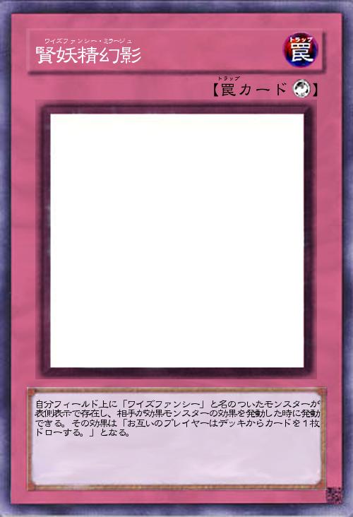 | 自分フィールド上に「ワイズファンシー」と名のついたモンスターが表側表示で存在し、相手が効果モンスターの効果を発動した時に発動できる。その効果は「お互いのプレイヤーはデッキからカードを1枚ドローする。」となる。 | |||