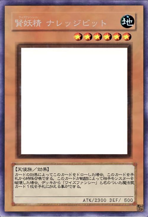 | カードの効果によってこのカードをドローした場合、このカードを手札から特殊召喚できる。このカードが戦闘によって相手モンスターを破壊した場合、デッキから「ワイズファンシー」と名のついた魔法罠カード1枚を手札に加える事ができる。 | |||