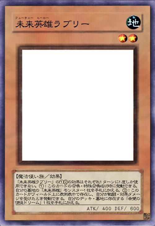 | 「未来英雄ラブリー」の①②の効果はそれぞれ1ターンに1度しか使用できない。①:このカードの召喚・特殊召喚成功時に発動できる。自分の墓地の「未来英雄」モンスター1枚を手札に加える。②:このカードがフィールド上に表側表示で存在し、自分が戦闘・効果ダメージを受けたとき発動できる。自分のデッキ・墓地に存在する「希望の使徒ドリーム」1枚を手札に加える。 | |||