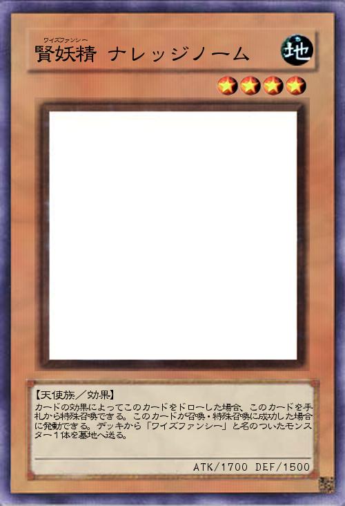 | カードの効果によってこのカードをドローした場合、このカードを手札から特殊召喚できる。このカードが召喚・特殊召喚に成功した場合に発動できる。デッキから「ワイズファンシー」と名のついたモンスター1体を墓地へ送る。 | |||