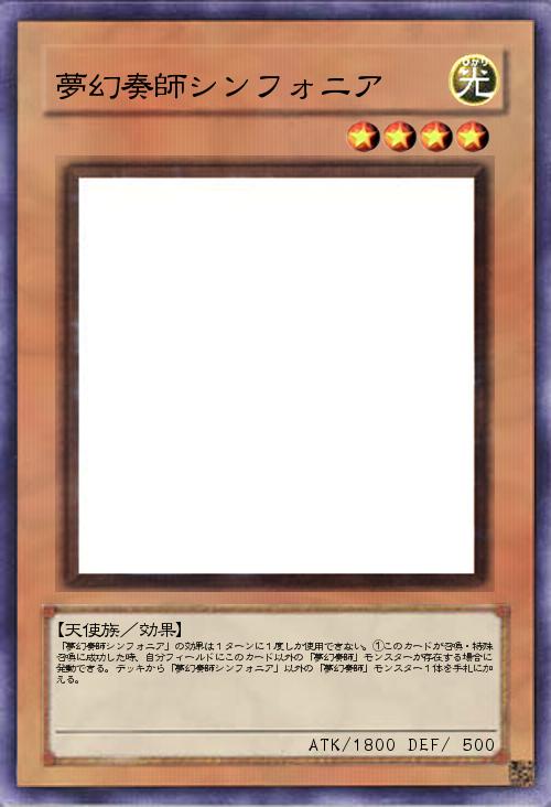 | 「夢幻奏師シンフォニア」の効果は1ターンに1度しか使用できない。①このカードが召喚・特殊召喚に成功した時、自分フィールドにこのカード以外の「夢幻奏師」モンスターが存在する場合に発動できる。デッキから「夢幻奏師シンフォニア」以外の「夢幻奏師」モンスター1体を手札に加える。 | |||