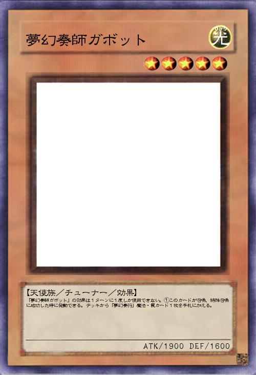 夢幻奏師では初の上級モンスターです。効果は夢幻奏符のサーチ。奏符は後であげる予定。とりあえずモンスターはあと2種類出す予定です。