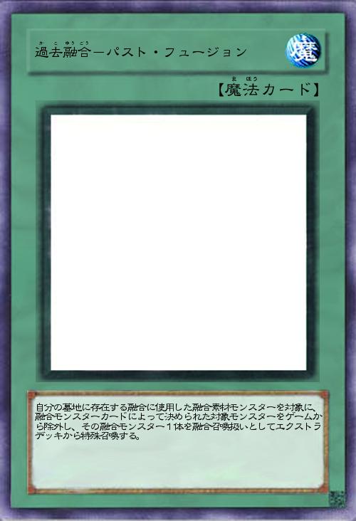 | 自分の墓地に存在する融合に使用した融合素材モンスターを対象に、融合モンスターカードによって決められた対象モンスターをゲームから除外し、その融合モンスター1体を融合召喚扱いとしてエクストラデッキから特殊召喚する。 | |||