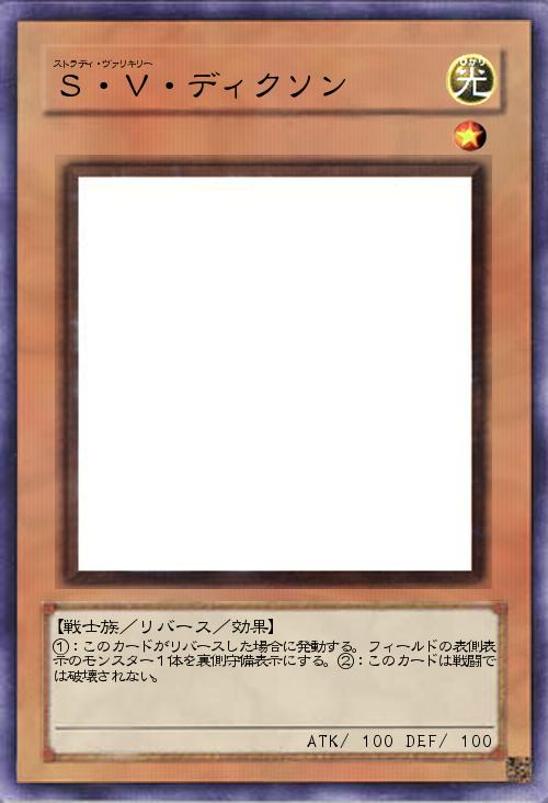 | ①:このカードがリバースした場合に発動する。フィールドの表側表示のモンスター1体を裏側守備表示にする。②:このカードは戦闘では破壊されない。 | |||