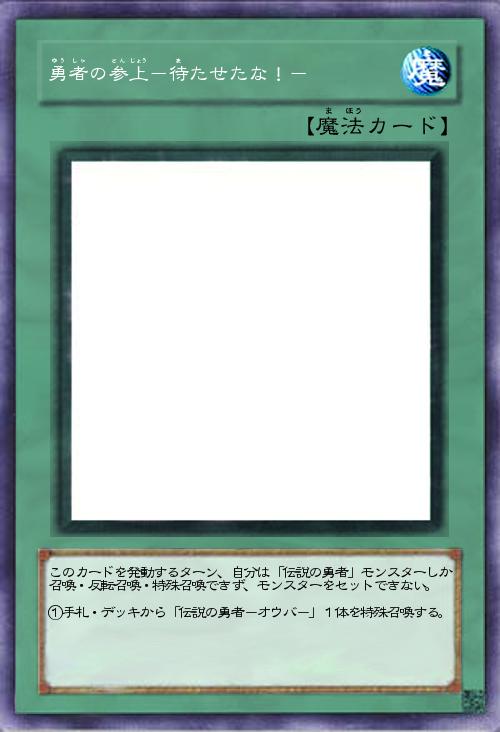 | このカードを発動するターン、自分は「伝説の勇者」モンスターしか召喚・反転召喚・特殊召喚できず、モンスターをセットできない。 ①手札・デッキから「伝説の勇者-オウバ-」1体を特殊召喚する。 | |||