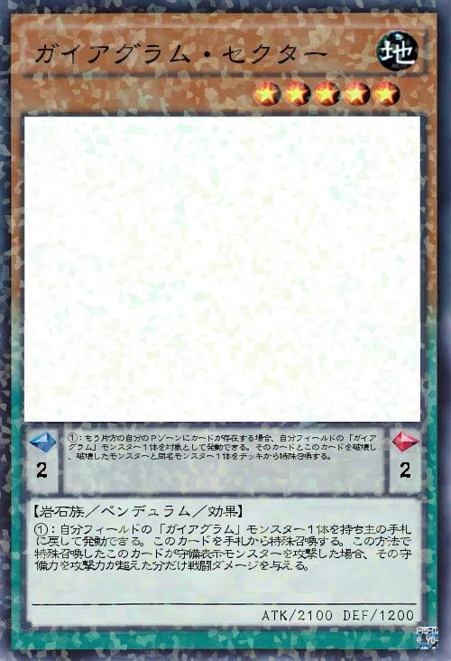 | ①:もう片方の自分のPゾーンにカードが存在する場合、自分フィールドの「ガイアグラム」モンスター1体を対象として発動できる。そのカードとこのカードを破壊し、破壊したモンスターと同名モンスター1体をデッキから特殊召喚する。 | |||