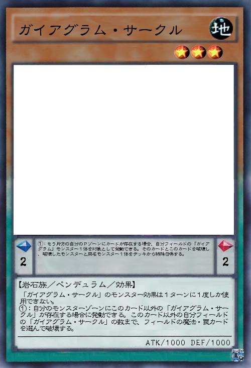 | ①:もう片方の自分のPゾーンにカードが存在する場合、自分フィールドの「ガイアグラム」モンスター1体を対象として発動できる。そのカードとこのカードを破壊し、破壊したモンスターと同名モンスター1体をデッキから特殊召喚する。 | |||