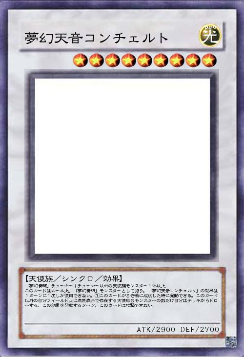| 「夢幻奏師」チューナー+チューナー以外の天使族モンスター1体以上 このカードはルール上、「夢幻奏師」モンスターとして扱う。「夢幻天音コンチェルト」の効果は1ターンに1度しか使用できない。①このカードがS召喚に成功した時に発動できる。このカード以外の自分フィールド上に表側表示で存在する天使族Sモンスターの数だけ自分はデッキからドローする。この効果を発動するターン、このカードは攻撃できない。 | |||