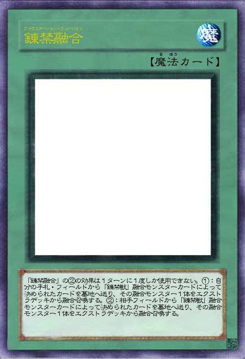 錬禁融合(アルケミテーション・フュージョン)はカテゴリの基点となる融合カードであり、自分または相手のカードを使用して融合召喚を行えます。」(2016-01-14 00:12)