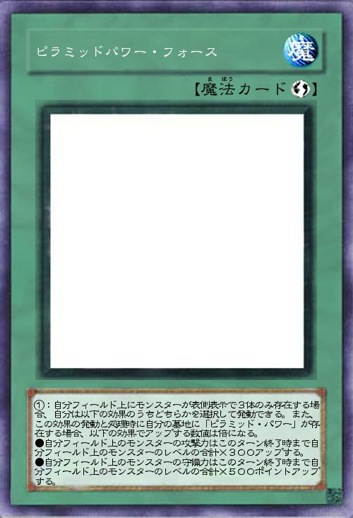 | ①:自分フィールド上にモンスターが表側表示で3体のみ存在する場合、自分は以下の効果のうちどちらかを選択して発動できる。また、この効果の発動と処理時に自分の墓地に「ピラミッド・パワー」が存在する場合、以下の効果でアップする数値は倍になる。 ●自分フィールド上のモンスターの攻撃力はこのターン終了時まで自分フィールド上のモンスターのレベルの合計×300アップする。 ●自分フィールド上のモンスターの守備力はこのターン終了時まで自分フィールド上のモンスターのレベルの合計×500ポイントアップする。 | |||