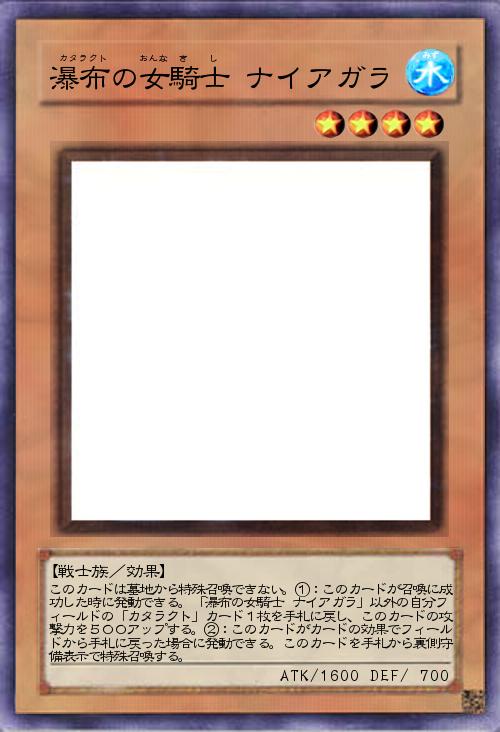 | このカードは墓地から特殊召喚できない。①:このカードが召喚に成功した時に発動できる。「瀑布の女騎士 ナイアガラ」以外の自分フィールドの「カタラクト」カード1枚を手札に戻し、このカードの攻撃力を500アップする。②:このカードがカードの効果でフィールドから手札に戻った場合に発動できる。このカードを手札から裏側守備表示で特殊召喚する。 | |||