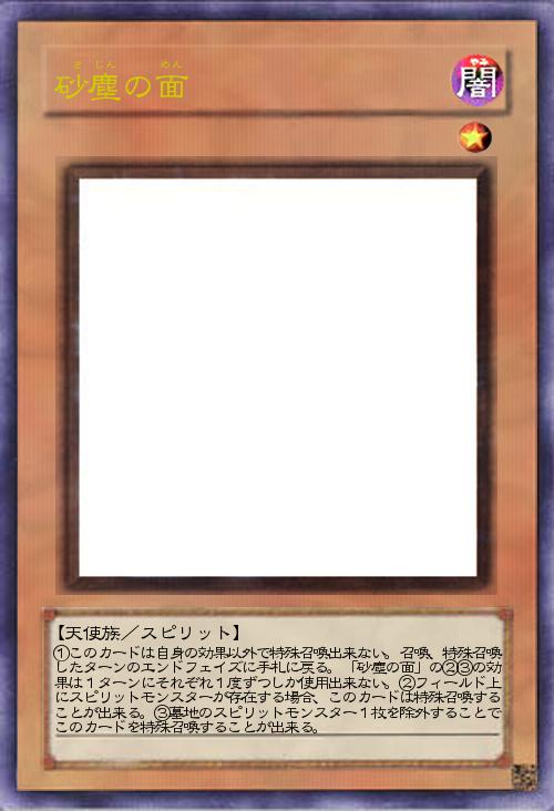 | ①このカードは自身の効果以外で特殊召喚出来ない。召喚、特殊召喚したターンのエンドフェイズに手札に戻る。「砂塵の面」の②③の効果は1ターンにそれぞれ1度ずつしか使用出来ない。②フィールド上にスピリットモンスターが存在する場合、このカードは特殊召喚することが出来る。③墓地のスピリットモンスター1枚を除外することでこのカードを特殊召喚することが出来る。 | |||