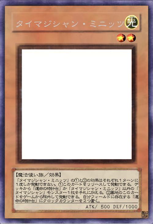 | 「タイマジシャン・ミニッツ」の①と②の効果はそれぞれ1ターンに1度しか発動できない。①このカードをリリースして発動できる。デッキから「運命の時計台」か「タイマジシャン・ミニッツ」以外の「タイマジシャン」モンスター1枚を手札に加える。②墓地のこのカードをゲームから除外して発動できる。自分フィールドに存在する「運命の時計台」にクロックカウンターを2つ置く。 | |||