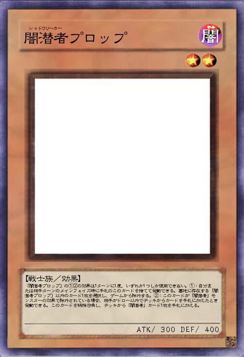 | 「闇潜者プロップ」の①②の効果は1ターンに1度、いずれか1つしか使用できない。①:自分または相手ターンのメインフェイズ時に手札のこのカードを捨てて発動できる。墓地に存在する「闇潜者プロップ」以外のカード1枚を選択し、ゲームから除外する。②:このカードが「闇潜者」モンスターの効果で除外されている場合、相手がドロー以外でデッキからカードを手札に加えたとき発動できる。このカードを特殊召喚し、デッキから「闇潜者」カード1枚を手札に加える。 | |||