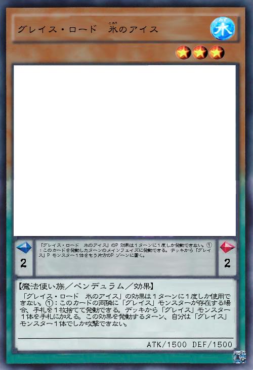 | 「グレイス・ロード 氷のアイス」のP効果は1ターンに1度しか発動できない。①:このカードを発動したターンのメインフェイズに発動できる。デッキから「グレイス」Pモンスター1体をもう片方のPゾーンに置く。 | |||