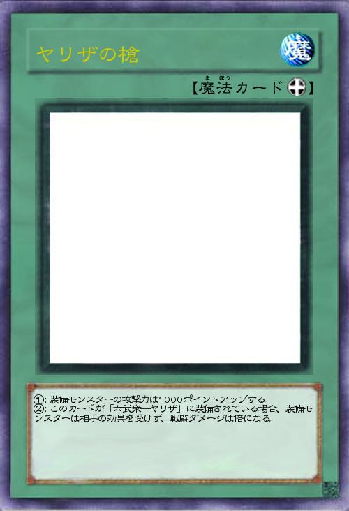 | ①:装備モンスターの攻撃力は1000ポイントアップする。 ②:このカードが「六武衆―ヤリザ」に装備されている場合、装備モンスターは相手の効果を受けず、戦闘ダメージは倍になる。 | |||