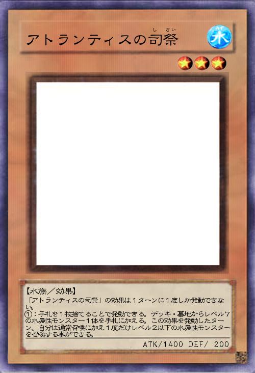 | 「アトランティスの司祭」の効果は1ターンに1度しか発動できな い。 ①:手札を1枚捨てることで発動できる。デッキ・墓地からレベル7の水属性モンスター1体を手札に加える。この効果を発動したター ン、自分は通常召喚に加え1度だけレベル2以下の水属性モンスターを召喚する事ができる。 | |||
