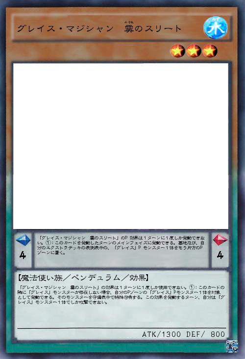 | 「グレイス・マジシャン 霙のスリート」の効果は1ターンに1度しか使用できない。①:このカードの隣に「グレイス」モンスターが存在しない場合、自分のPゾーンの「グレイス」Pモンスター1体を対象として発動できる。そのモンスターを守備表示で特殊召喚する。この効果を発動するターン、自分は「グレイス」モンスター1体でしか攻撃できない。 | |||