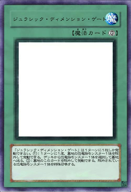 | 「ジュラシック・ディメンション・ゲート」は1ターンに1枚しか発動できない。①:1ターンに1度、墓地の恐竜族モンスター1体を除外して発動できる。デッキから恐竜族モンスター1体を選択して墓地へ送る。②:墓地のこのカードを除外して発動できる。除外されている恐竜族モンスター1体を特殊召喚する。 | |||