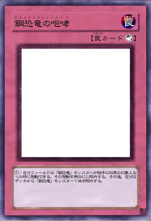 | ①:自分フィールドの「鋼恐竜」モンスターが相手の効果の対象となった時に発動できる。その発動を無効にし除外する。その後、自分はデッキから「鋼恐竜」モンスター1体を除外する。 | |||