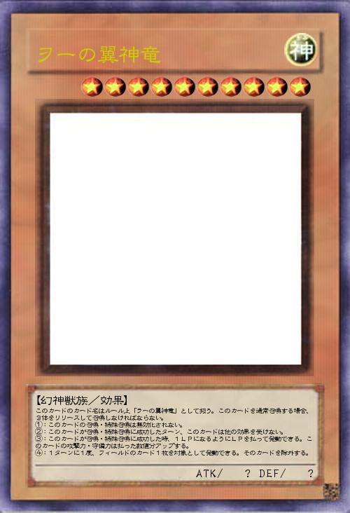 | このカードのカード名はルール上「ラーの翼神竜」として扱う。このカードを通常召喚する場合、3体をリリースして召喚しなければならない。 ①:このカードの召喚・特殊召喚は無効化されない。 ②:このカードが召喚・特殊召喚に成功したターン、このカードは他の効果を受けない。 ③:このカードが召喚・特殊召喚に成功した時、1LPになるようにLPを払って発動できる。このカードの攻撃力・守備力は払った数値分アップする。 ④:1ターンに1度、フィールドのカード1枚を対象として発動できる。そのカードを除外する。 | |||