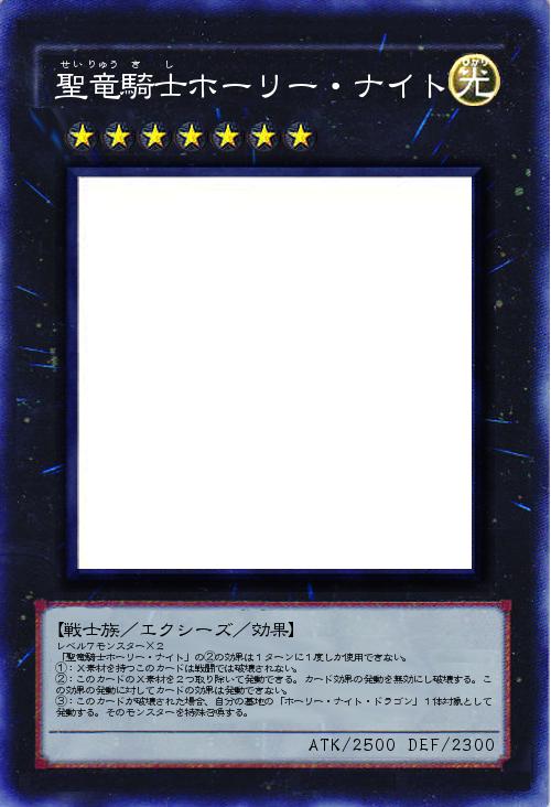 | レベル7モンスター×2 「聖竜騎士ホーリー・ナイト」の②の効果は1ターンに1度しか使用できない。 ①:X素材を持つこのカードは戦闘では破壊されない。 ②:このカードのX素材を2つ取り除いて発動できる。カード効果の発動を無効にし破壊する。この効果の発動に対してカードの効果は発動できない。 ③:このカードが破壊された場合、自分の墓地の「ホーリー・ナイト・ドラゴン」1体対象として発動する。そのモンスターを特殊召喚する。 | |||