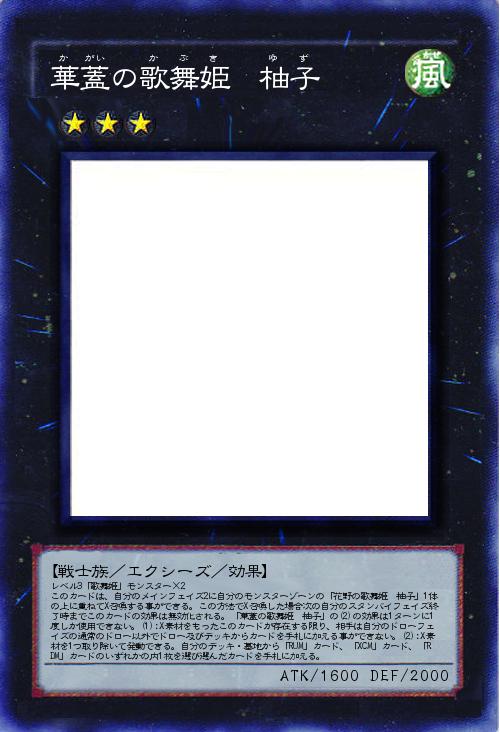 | レベル3「歌舞姫」モンスター×2 このカードは、自分のメインフェイズ2に自分のモンスターゾーンの「花野の歌舞姫 柚子」1体の上に重ねてX召喚する事ができる。この方法でX召喚した場合次の自分のスタンバイフェイズ終了時までこのカードの効果は無効化される。「華蓋の歌舞姫 柚子」の(2)の効果は1ターンに1度しか使用できない。(1):X素材をもったこのカードが存在する限り、相手は自分のドローフェイズの通常のドロー以外でドロー及びデッキからカードを手札に加える事ができない。(2):X素材を1つ取り除いて発動できる。自分のデッキ・墓地から「RUM」カード、「XCM」カード、「RDM」カードのいずれかの内1枚を選び選んだカードを手札に加える。 | |||