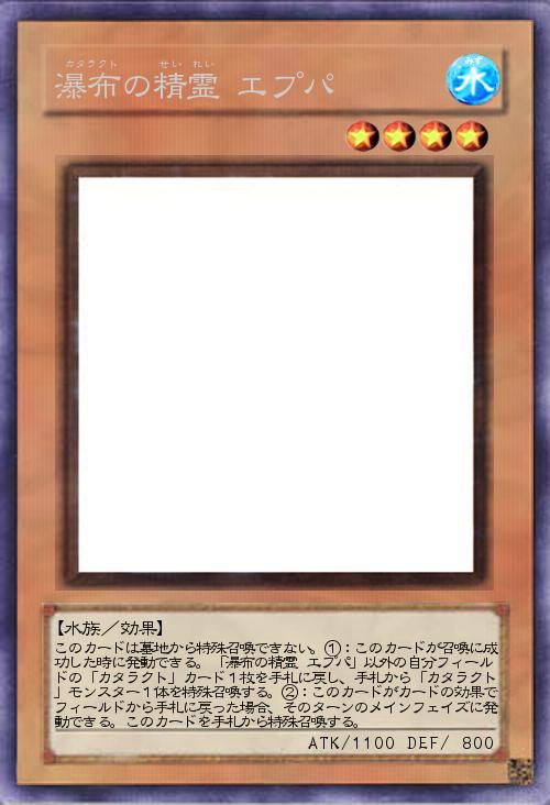 | このカードは墓地から特殊召喚できない。①:このカードが召喚に成功した時に発動できる。「瀑布の精霊 エプパ」以外の自分フィールドの「カタラクト」カード1枚を手札に戻し、手札から「カタラクト」モンスター1体を特殊召喚する。②:このカードがカードの効果でフィールドから手札に戻った場合、そのターンのメインフェイズに発動できる。このカードを手札から特殊召喚する。 | |||