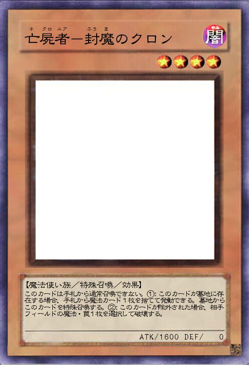 | このカードは手札から通常召喚できない。①:このカードが墓地に存在する場合、手札から魔法カード1枚を捨てて発動できる。墓地からこのカードを特殊召喚する。②:このカードが除外された場合、相手フィールドの魔法・罠1枚を選択して破壊する。 | |||
