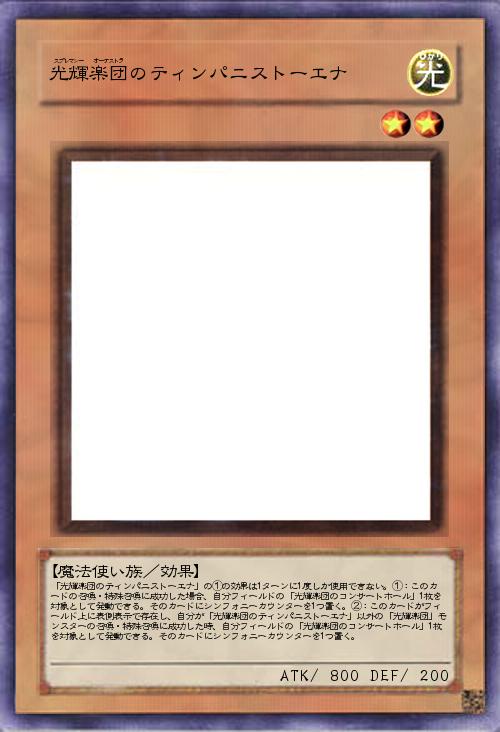 | 「光輝楽団のティンパニストーエナ」の①の効果は1ターンに1度しか使用できない。①:このカードの召喚・特殊召喚に成功した場合、自分フィールドの「光輝楽団のコンサートホール」1枚を対象として発動できる。そのカードにシンフォニーカウンターを1つ置く。②:このカードがフィールド上に表側表示で存在し、自分が「光輝楽団のティンパニストーエナ」以外の「光輝楽団」モンスターの召喚・特殊召喚に成功した時、自分フィールドの「光輝楽団のコンサートホール」1枚を対象として発動できる。そのカードにシンフォニーカウンターを1つ置く。 | |||