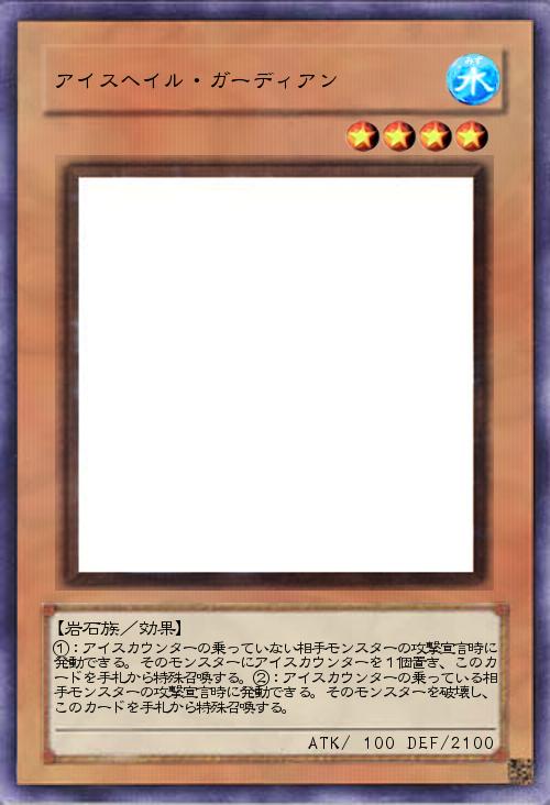 | ①:アイスカウンターの乗っていない相手モンスターの攻撃宣言時に発動できる。そのモンスターにアイスカウンターを1個置き、このカードを手札から特殊召喚する。②:アイスカウンターの乗っている相手モンスターの攻撃宣言時に発動できる。そのモンスターを破壊し、このカードを手札から特殊召喚する。 | |||