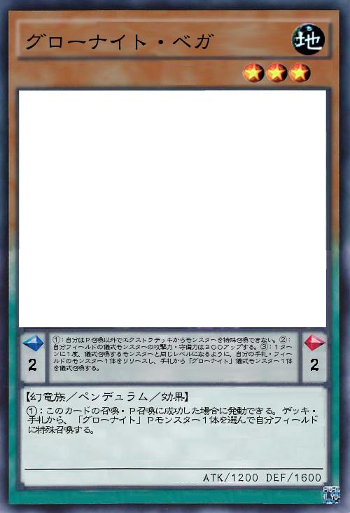 | ①:このカードの召喚・P召喚に成功した場合に発動できる。デッキ・手札から、「グローナイト」Pモンスター1体を選んで自分フィールドに特殊召喚する。 | |||