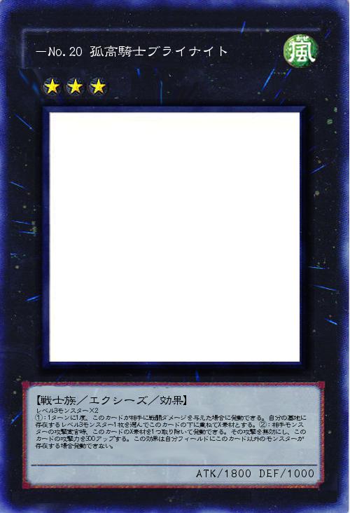 | レベル3モンスター×2 ①:1ターンに1度、このカードが相手に戦闘ダメージを与えた場合に発動できる。自分の墓地に存在するレベル3モンスター1枚を選んでこのカードの下に重ねてX素材とする。②:相手モンスターの攻撃宣言時、このカードのX素材を1つ取り除いて発動できる。その攻撃を無効にし、このカードの攻撃力を300アップする。この効果は自分フィールドにこのカード以外のモンスターが存在する場合発動できない。 | |||
