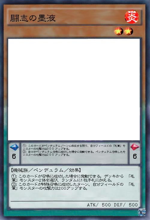 | ①:このカードがペンデュラムゾーンに存在する限り、自分フィールドの「毛筆」モンスターの攻撃力は300アップする。 ②:自分がペンデュラム召喚に成功した場合に発動できる。ペンデュラム召喚したモンスターの攻撃力は200アップする。 | |||