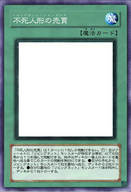 | 「不死人形の売買」は1ターンに1枚しか発動できない。①:自分フィールドに「リビングネット」モンスターが存在する場合、以下の効果から1つを選んで発動できる。相手はデッキの一番上のカードを墓地へ送る事でこのカードの発動を無効にできる。●自分の手札から「リビングネット」モンスター1枚を墓地へ送り、デッキから2枚ドローする。●自分の墓地の「リビングネット」モンスター1体を除外し、デッキから1枚ドローする。 | |||
