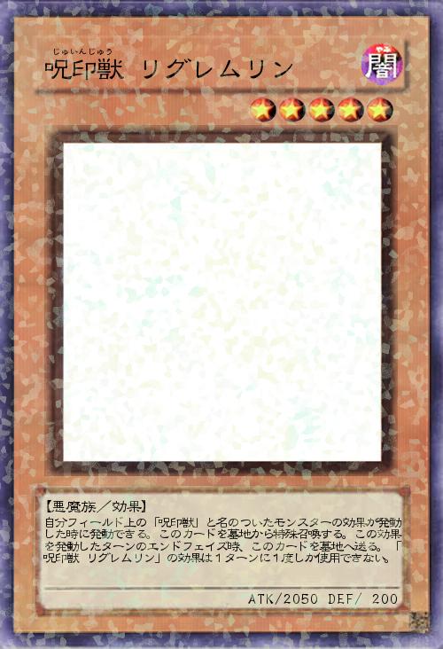| 自分フィールド上の「呪印獣」と名のついたモンスターの効果が発動した時に発動できる。このカードを墓地から特殊召喚する。この効果を発動したターンのエンドフェイズ時、このカードを墓地へ送る。「呪印獣 リグレムリン」の効果は1ターンに1度しか使用できない。 | |||