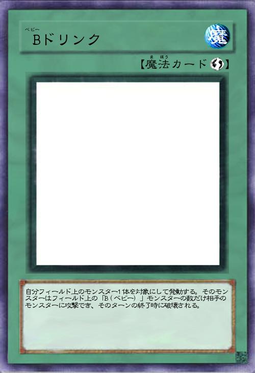 | 自分フィールド上のモンスター1体を対象にして発動する。そのモンスターはフィールド上の「B(ベビー)」モンスターの数だけ相手のモンスターに攻撃でき、そのターンの終了時に破壊される。 | |||