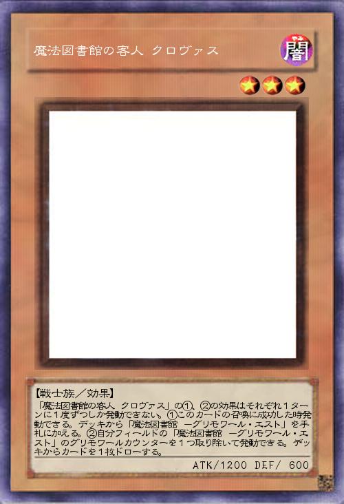 | 「魔法図書館の客人 クロヴァス」の①、②の効果はそれぞれ1ターンに1度ずつしか発動できない。①このカードの召喚に成功した時発動できる。デッキから「魔法図書館 -グリモワール・エスト」を手札に加える。②自分フィールドの「魔法図書館 -グリモワール・エスト」のグリモワールカウンターを1つ取り除いて発動できる。デッキからカードを1枚ドローする。 | |||