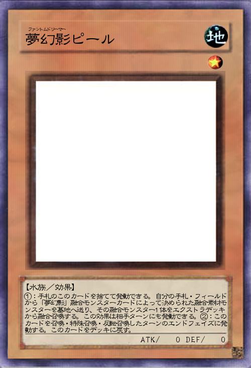 | ①:手札のこのカードを捨てて発動できる。自分の手札・フィールドから「夢幻影」融合モンスターカードによって決められた融合素材モンスターを墓地へ送り、その融合モンスター1体をエクストラデッキから融合召喚する。この効果は相手ターンにも発動できる。②:このカードを召喚・特殊召喚・反転召喚したターンのエンドフェイズに発動する。このカードをデッキに戻す。 | |||