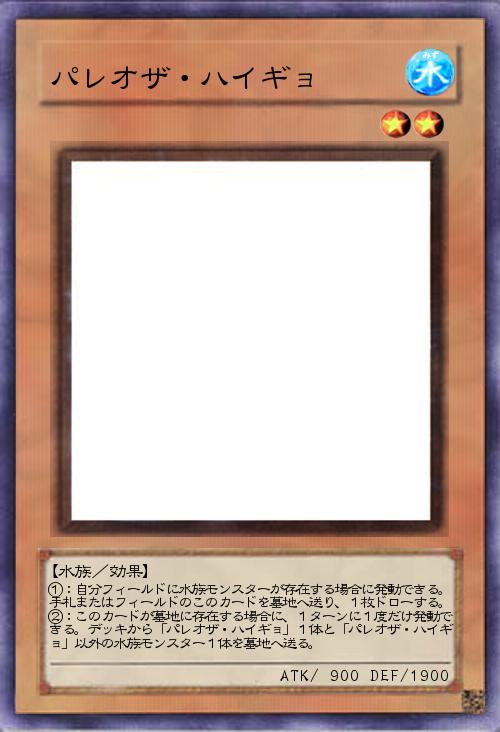 | ①:自分フィールドに水族モンスターが存在する場合に発動できる。手札またはフィールドのこのカードを墓地へ送り、1枚ドローする。②:このカードが墓地に存在する場合に、1ターンに1度だけ発動できる。デッキから「パレオザ・ハイギョ」1体と「パレオザ・ハイギョ」以外の水族モンスター1体を墓地へ送る。 | |||