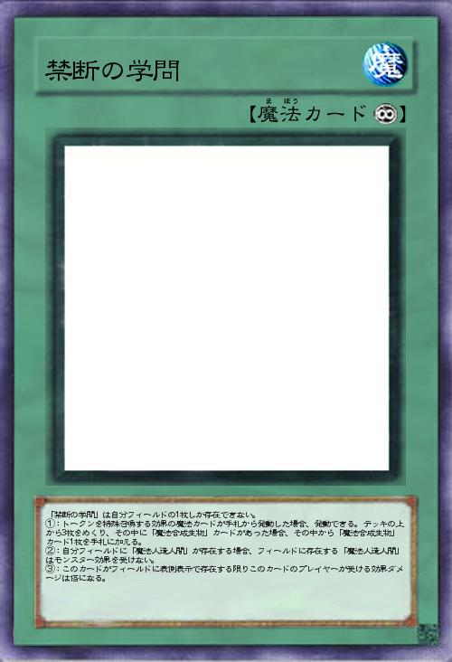 | 「禁断の学問」は自分フィールドの1枚しか存在できない。 ①:トークンを特殊召喚する効果の魔法カードが手札から発動した場合、発動できる。デッキの上から3枚をめくり、その中に「魔法合成生物」カードがあった場合、その中から「魔法合成生物」カード1枚を手札に加える。 ②:自分フィールドに「魔法人造人間」が存在する場合、フィールドに存在する「魔法人造人間」はモンスター効果を受けない。 ③:このカードがフィールドに表側表示で存在する限りこのカードのプレイヤーが受ける効果ダメージは倍になる。 | |||