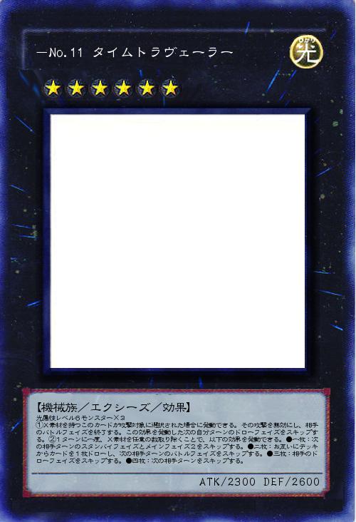 | 光属性レベル6モンスター×3 ①X素材を持つこのカードが攻撃対象に選択された場合に発動できる。その攻撃を無効にし、相手のバトルフェイズを終了する。この効果を発動した次の自分ターンのドローフェイズをスキップする。②1ターンに一度、X素材を任意の数取り除くことで、以下の効果を発動できる。●一枚:次の相手ターンのスタンバイフェイズとメインフェイズ2をスキップする。●二枚:お互いにデッキからカードを1枚ドローし、次の相手ターンのバトルフェイズをスキップする。●三枚:相手のドローフェイズをスキップする。●四枚:次の相手ターンをスキップする。 | |||
